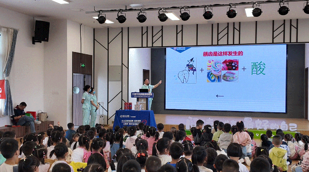 本次活动紧扣“全国爱牙日”“减糖控体重 护牙促健康”宣传主题,独言口腔团队通过丰富多样的形式开展科普:借助趣味 PPT 解读龋齿成因,播放动画短片展现牙齿“健康密码”,用仿真模型演示正确刷牙方式,更以有奖问答调动孩子们的参与热情。同时,团队还现场为小朋友进行口腔健康筛查,针对儿童多发龋齿的发展过程、潜在危害及预防要点展开重点讲解。