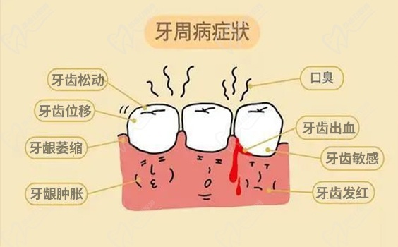 牙周炎是一种慢性且不可逆的疾病,主要表现为牙龈出血、牙龈肿痛、口腔异味、牙齿松动等,若出现上述症状应及时就诊,防止长期牙周疾病导致牙齿脱落。自我口腔清洁只能清除牙菌斑和软垢,不能去除牙石,需定期到医院由口腔医生进行洁牙,建议每年 1~2 次。